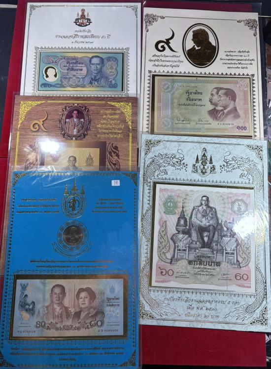 ชุดรวมธนบัตรที่ระลึกรัชกาลที่ 9 จำนวน 5 ใบ สภาพสวยตามรูป