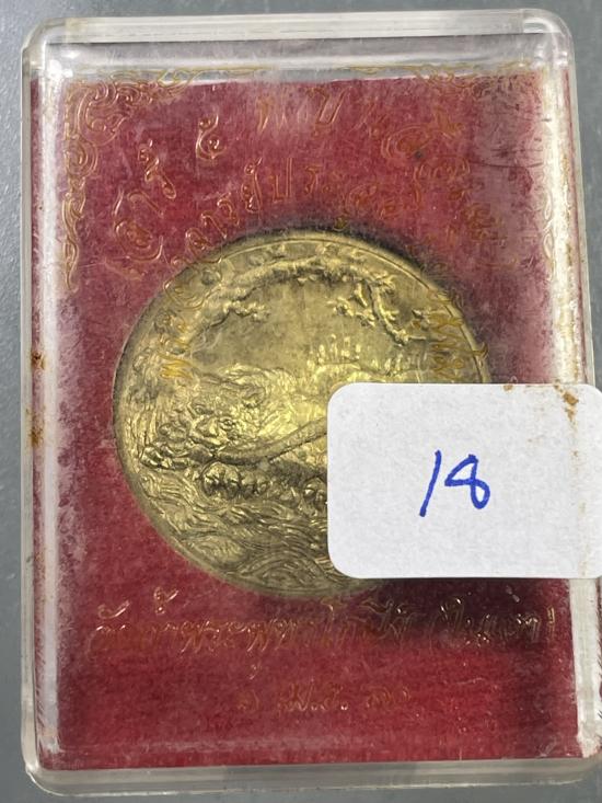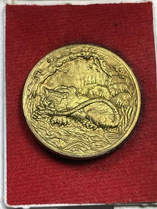 เหรียญ { พญาเสือนอนกิน รุ่นสอง }เนื้อฝาบาตร แช่น้ำมันเสือ พระอาจารย์ประสูติ " วัดในเตา " จ.ตรัง ปี60 เลข18