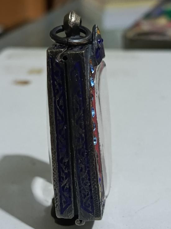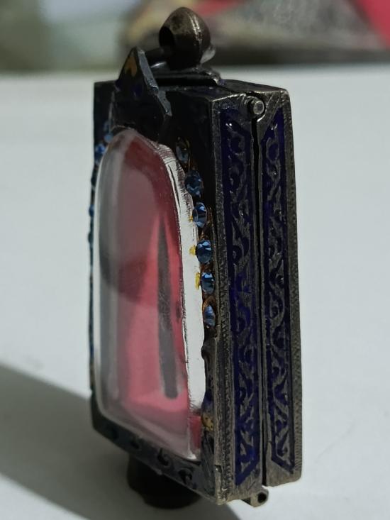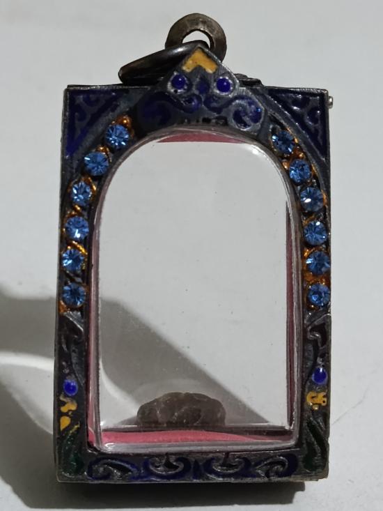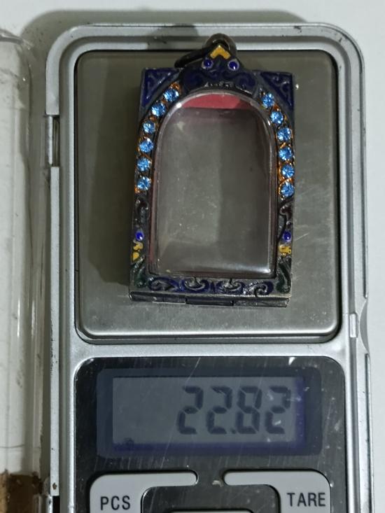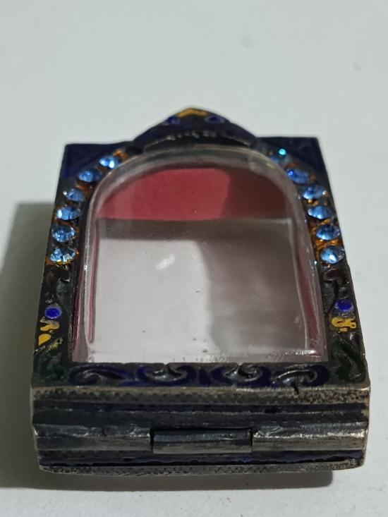 ตลับเงินแท้ลงยาฝังพลอย เปิดหลังแกะลายลงยาร้อน หัวสิงห์ใหญ่ ใส่พระสมเด็จ.หนาหนัก 22.82กรัม |