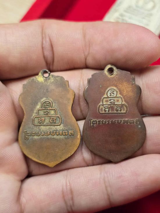 เคาะเดียวแดง เหรียญภูเขาทอง วัดสระเกศ กรุงเทพฯ พ.ศ.2499 สมเด็จพระสังฆราชอยู่ ปลุกเสก 2 เหรียญ |