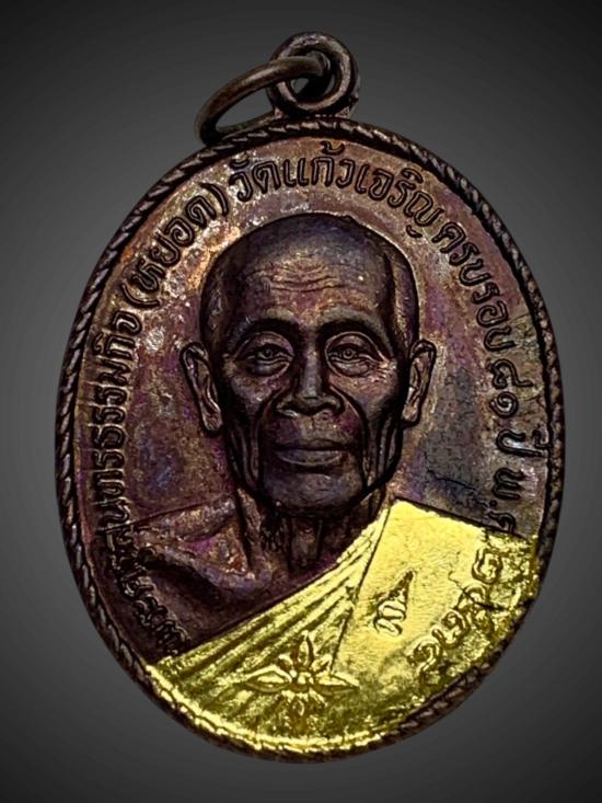 เหรียญหลวงปู่หยอด ชินวํโส วัดแก้วเจริญ จังหวัดสมุทรสงคราม รุ่นครบรอบ 81 ปี พ.ศ. 2534