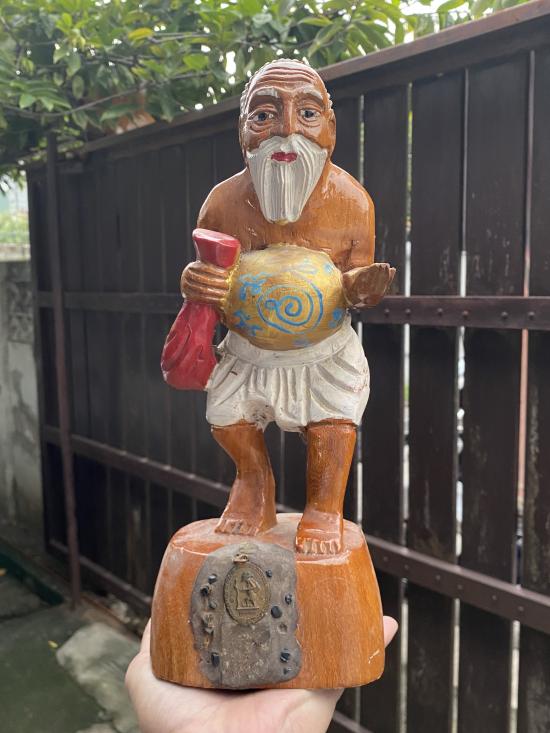 พระบูชาไม้แกะ ชูชกพารวย สูง12นิ้วกว่า แปะมวลสารพลอยเสกและเหรียญ อาจารย์แดง วัดป้อมรามัญ ออกราวปี2555 จารมือ ลงสี สวยสมบูรณ์ องค์ใหญ่มาก |