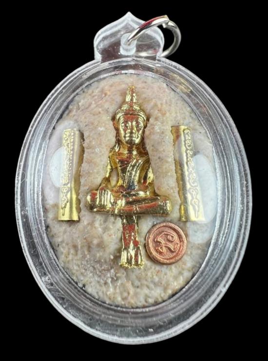 หลังอุดมวลสาร+ฝังพระยอดธง+ฝังตะกรุดคู่+ฝังนะโม+เลี่ยมพร้อมใช้วัดใจเคาะแรกแดงครับ |