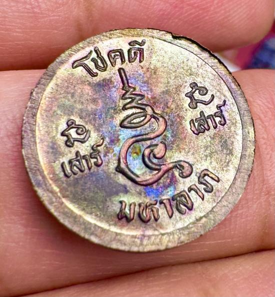 เหรียญโชคดี เสาร์5 เนื้อทองแดง ปี พ.ศ. 2537 โดย หลวงพ่อเกษม เขมโก |