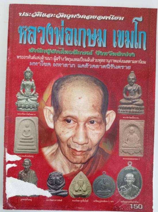 หนังสือประวัติและวัตถุมงคลยอดนิยมหลวงพ่อเกษม เขมโก สภาพตามรูปเคาะเดียวคะ |