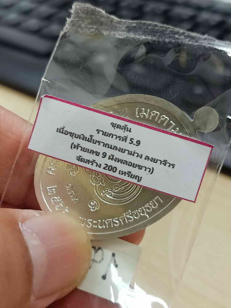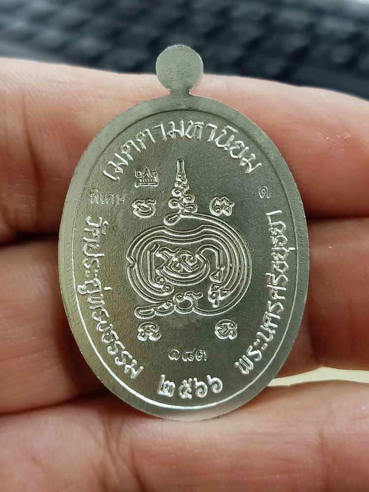 วัดใจ 100 เหรียญเจริญพรบน 6 รอบ หลวงพ่อเพ็ชร วัดประดู่ทรงธรรม จ.อยุธยา 2566 ชุบเงิน ลงยาม่วง หมายเลข 183 สร้าง 200 เหรียญ กล่องเดิม |