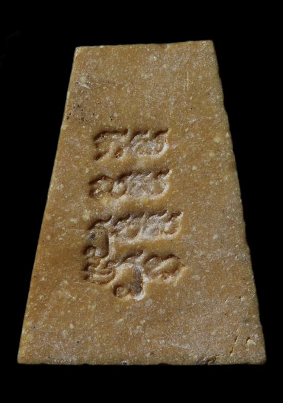 หลวงพ่อกวย วัดโฆสิตาราม พระสมเด็จเนื้อผงน้ำมัน หลังยันต์สี่แถว พิมพ์คางหมู ออกวัดบ้านแค จ.ชัยนาท ปี 2518 หลวงพ่อกวยปลุกเสก |