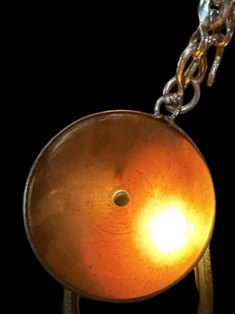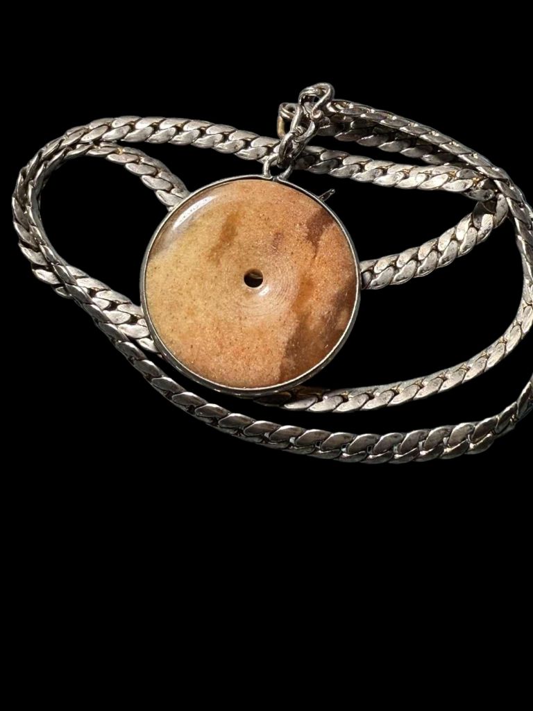 สร้อยโลหะผสมไม่ทราบชนิด จี้หินสีน้ำตาล ไม่ทราบชนิด ไฟส่องผ่าน (มือ2) ใส่สวย ใส่เท่ห์ครับ |