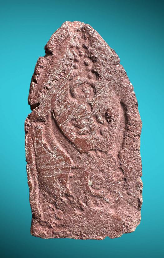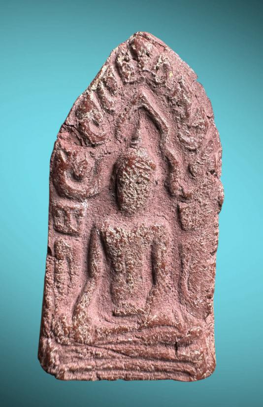 พระทำจากเนื้อว่านยา 108 ชนิด ผงเลขยันต์ตำราวัดเขาอ้อ 108 ดวง เป็นพิมพ์ขุนแผน ด้านหลังมีรูปดาบฟ้าฟื้น (นักเล่นนิยมเรียกว่าขุนแผนดาบไขว้)