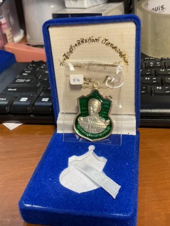 กรมหลวงชุมพรฯ รุ่นที่ระลึกสร้างพิพิธภัณฑ์เรือหลวงลันตา เหรียญเนื้อเงินลงยาสีฟ้าน้ำทะเล หมายเลข 84 มาพร้อมกลองเดิมๆครับ