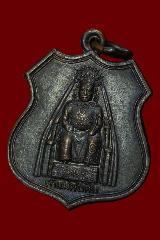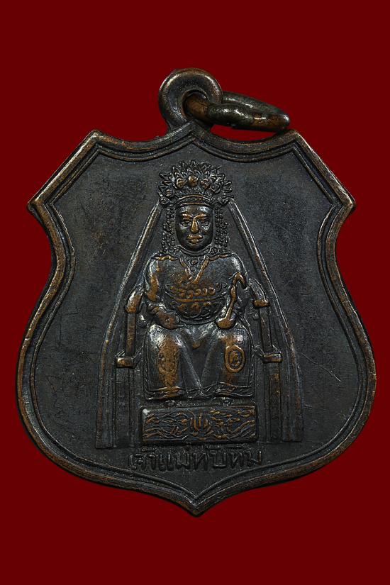 เหรียญเจ้าแม่ทับทิม รุ่นแรก ปี 2492 ห่วงเชื่อม ฉลองศาลสำเพ็ง เนื้อทองแดงรมดำ สวยเดิมๆแดงวัดใจ 120