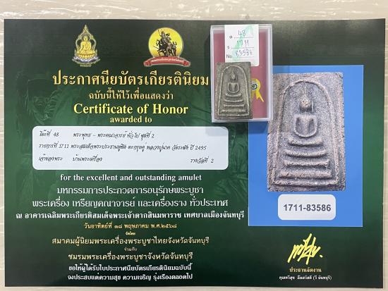 สร้างปี 2495 สภาพสวย สมบูรณ์ ไม่หักไม่ซ่อม รับประกันพระแท้ ดูง่าย ใบประกาศรางวัลที่2 งานสมาคม