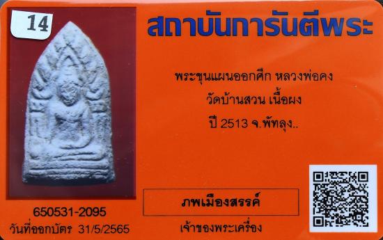 ( 14 ) พระผงบารมีคงไชยชุม พิมพ์พระขุนแผนออกศึก อ.ชุม ไชยคีรี , หลวงพ่อคง วัดบ้านสวน เนื้อผง ปี 2513 จ.พัทลุง ( มวลสารรุ่นนี้เข้มขลังมาก ) มาพร้อมบัตรรับรองพระแท้การันตีพระ