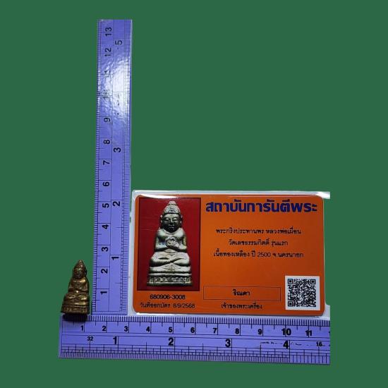 พระกริ่งประทานพร หลวงพ่อเผื่อน วัดเลขธรรมกิตติ์ พ.ศ.2500 พร้อมบัตรการันตีรับรอง |