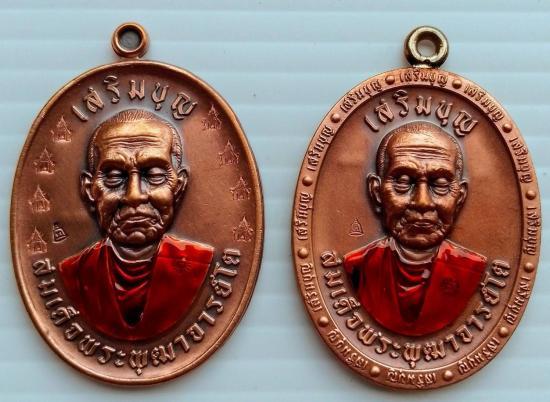 เหรียญสมเด็จโต รุ่นเสริมบุญ เนื้อทองแดงซาตินหลังเรียบตอกโบสถ์ 8 รอบลงยาจีวร 1 เหรียญ และ เนื้อทองแดงซาติน ห่วงเชื่อมลงยาจีวร 1 เหรียญ ปี 66 พร้อมกล่องเดิมสภาพสวย รวมรับ 2 เหรียญ |