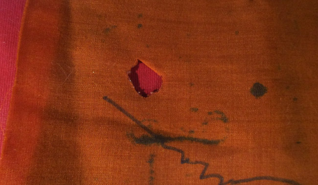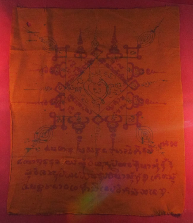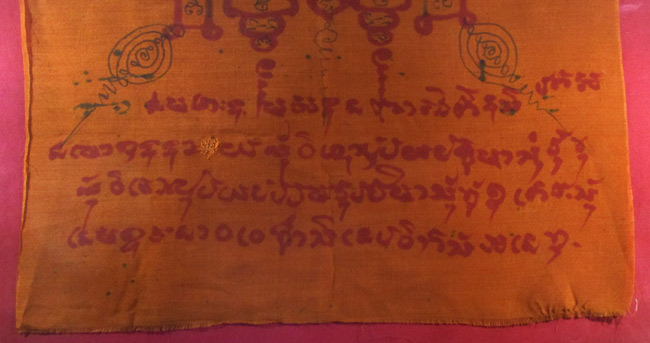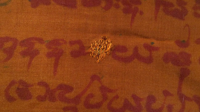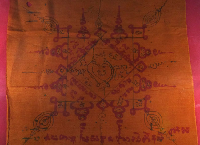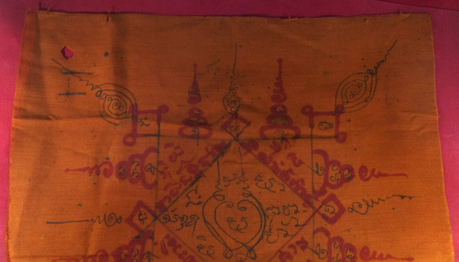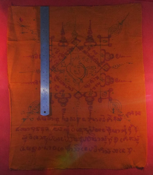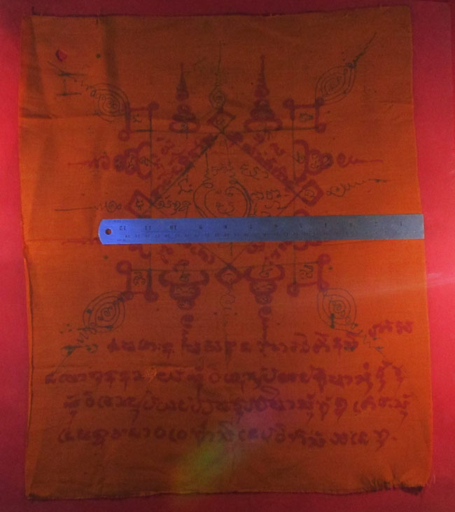 ผ้ายันต์ ไม่ทราบที่ จารยันต์ด้วยมือ เนื้อผ้าจีวร ครับ