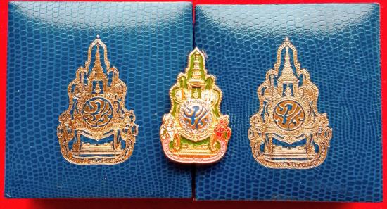 เข็มที่ระลึกตราสัญลักษณ์ งานฉลองสิริราชสมบัติครบ ๖๐ ปี จำนวน 3 ชิ้น |