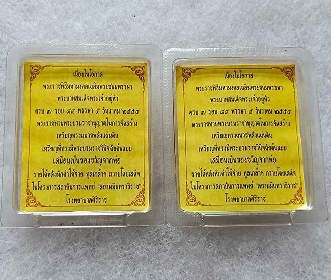 วัตถุประสงค์ เพื่อนำรายได้จากการบริจาคหลังหักค่าใช้จ่าย ทูลเกล้าๆ ถวายพระบาทสมเด็จพระเจ้าอยู่หัว โดยเสด็จพระราชกุศลใน โครงการสถาบันการแพทย์ สยามมินทราธิราช" โรงพยาบาลศิริราช และเหรียญชุดนี้ได้นำเข้าปลุกเสก 2 ครั้ง