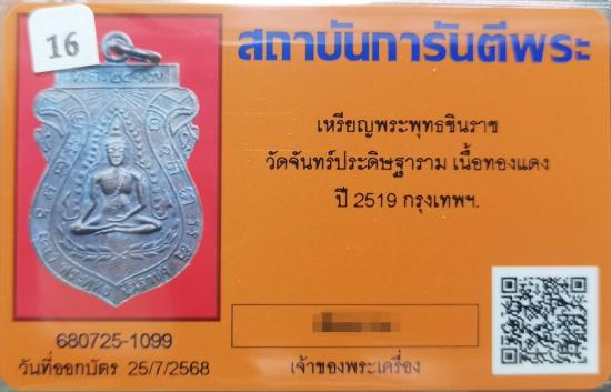 หรียญพระพุทธชินราช วัดจันทร์ประดิษฐาราม ปี2519 จ.กรุงเทพฯ |