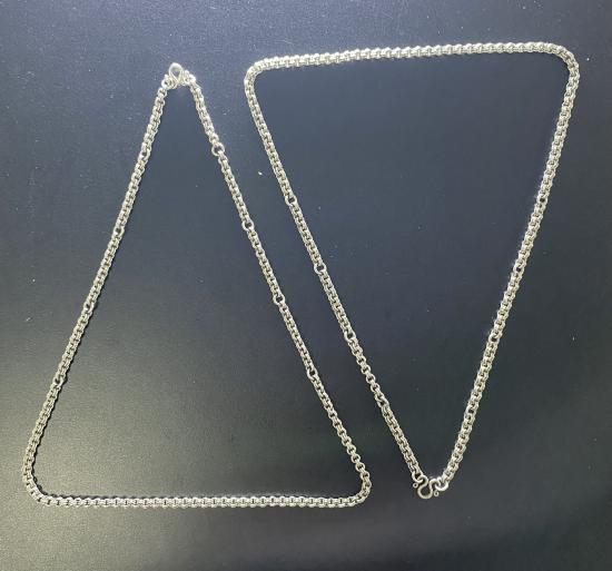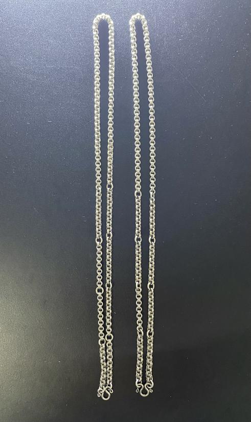 เปิดประมูลสร้อยสเเตนเลส 2 เส้น ยาว ประมาณ 40 cm. ห้อยพระได้ 9 องค์ ความโตสร้อยประมาณ 6 mm. |