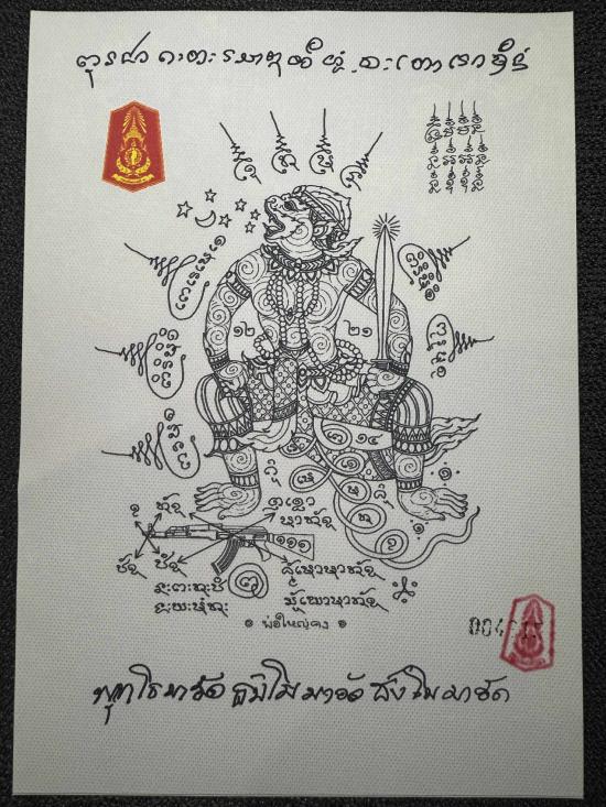 เคาะเดียว 250 ผ้ายันต์พหูรมานสีขาว no.004315 แม่ทัพภาคที่2.ทำแจกทหารชายแดนรอบที่2.หลวงปู่เมตตาอฐิฐานจิตเสกเดี่ยวอย่างเข้มขลัง(ผ้าแคนวาสสกรีนตรากองทัพภาคที่2)รันเลขนัมเบอร์พร้อมประทับหมึกเเดงตรากองทัพ |