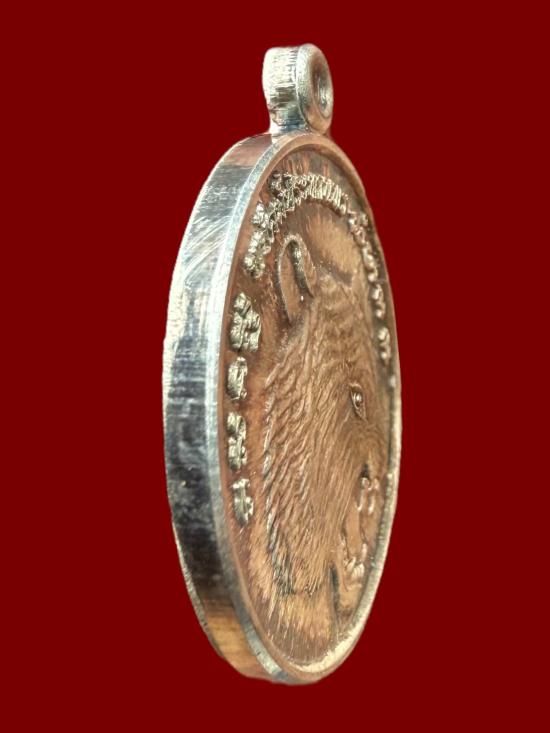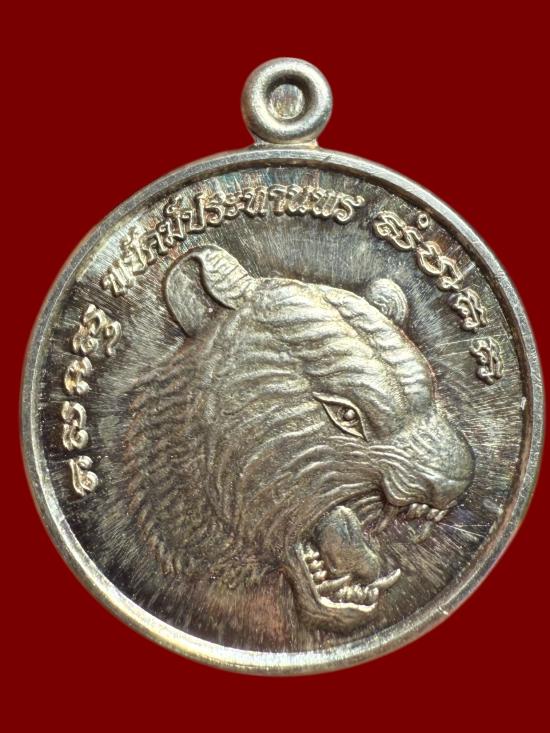 เหรียญเสือ เหรียญพยัคฆ์ รุ่น พยัคฆ์ประทานพร หลวงพ่อฟู วัดบางสมัคร หลวงพ่อชาญ วัดบางบ่อ เนื้อเงิน มีโค้ด หมายเลข 74 (เนื้อเงินสร้าง 99 เหรียญ)หายาก มีกล่องเดิม |