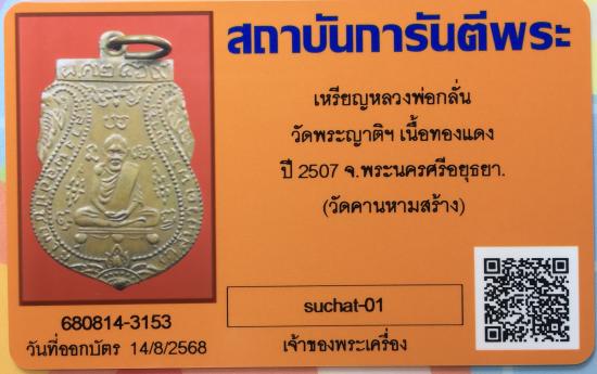 เหรียญหลวงพ่อกลั่น วัดพระญาติฯ เนื้อทองแดง ปี 2507 จ.พระนครศีอยุธยา วัดคานหามสร้าง |