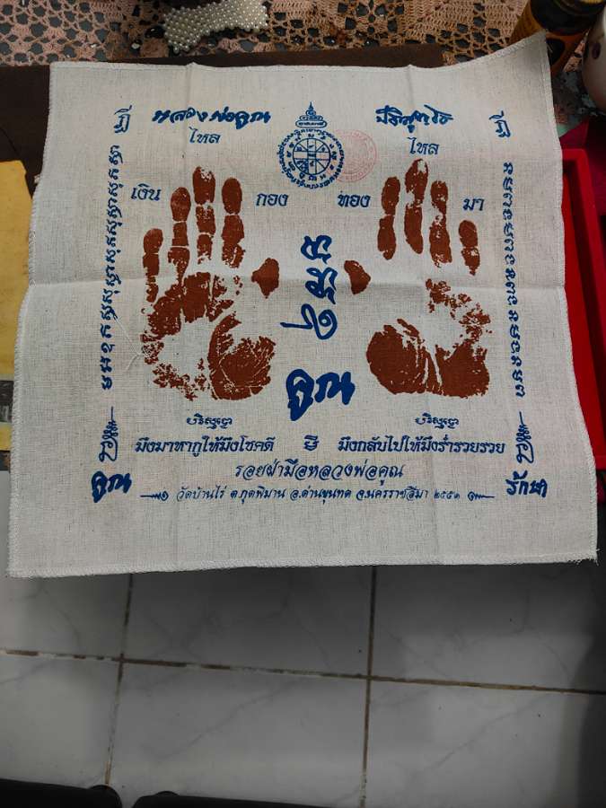 ผ้ายันต์รอยมือรอยเท้า หลวงพ่อคูณ วัดบ้านไร่ ปี 51 สวยเดิมจำนวน2ผืนอย่างละ1ผืน |