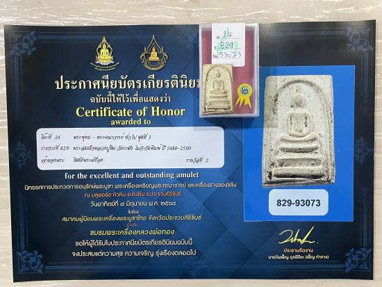 สร้างปี 2495 สภาพสวย สมบูรณ์ ไม่หักไม่ซ่อม รับประกันพระแท้ ดูง่าย ใบประกาศรางวัลที่2งานสมาคม