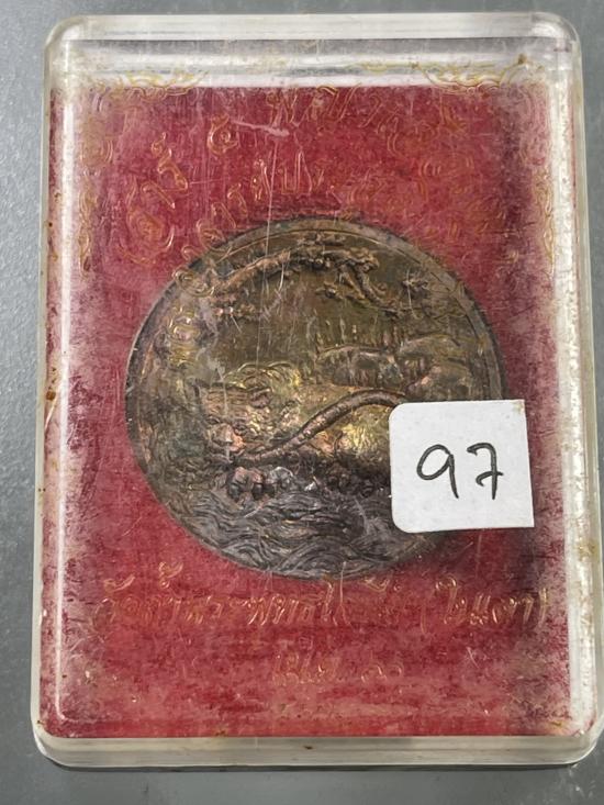 ชื่อพระเครื่อง เหรียญ { พญาเสือนอนกิน รุ่นสอง }เนื้อประกายรุ้ง พระอาจารย์ประสูติ " วัดในเตา " จ.ตรัง ปี60 เลข97 |
