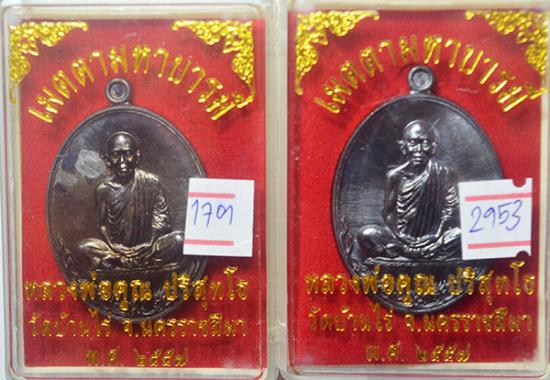 2 เหรียญ หลวงพ่อคูณ วัดบ้านไร่ นครราชสีมา รุ่น เมตตามหาบารมี 2557 เนื้อทองแดงรมดำ ตอกโค๊ด แจกทาน เลข 2953+1701 กล่องเดิม |
