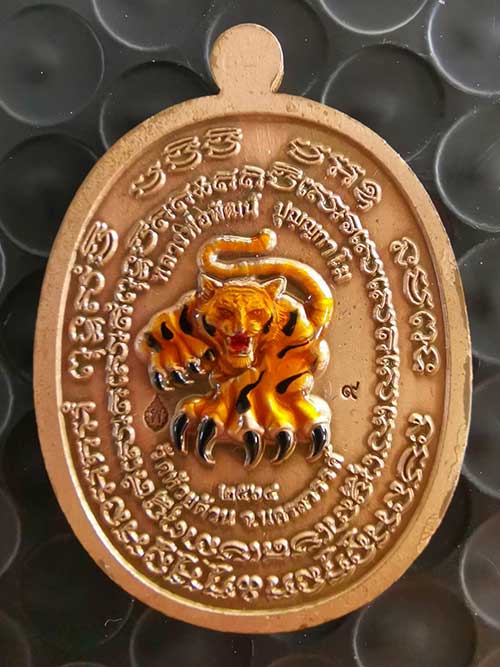 เลข..9..เนื้อทองแดงซาติน ลงยาดน้ำเงิน หน้ากาก3K หลังลงยาเสื0 รุ่นพยัคฆ์บารมีพันล้าน หลวงพ่อพัฒน์ วัดห้วยด้วน |