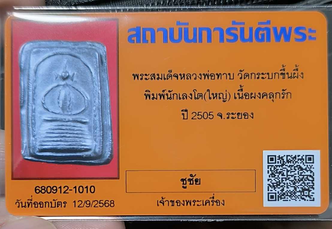 พระสมเด็จนักเลงโต พิมพ์ใหญ่ หลวงพ่อทาบ วัดกระบกขึ้นผึ้ง จ.ระยอง พร้อมบัตร