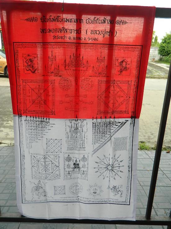 ผ้ายันต์พัดโบก มหาลาภ หลวงปู่คร่ำ วัดวังหว้า จ.ระยอง ผ้ายันต์ผืนใหญ่ ขนาด 23 นิ้ว x 42 นิ้ว |
