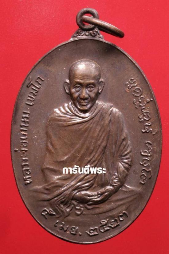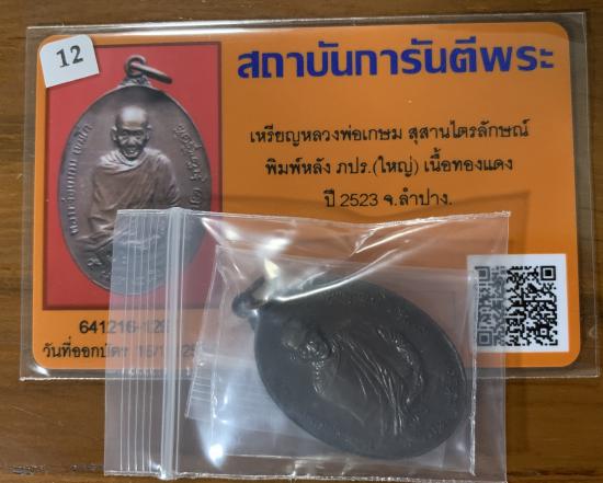 หลวงพ่อเกษม เขมโก สุสานไตรลักษณ์ ลำปาง รุ่นพิเศษ หลัง ภปร. พิมพ์ใหญ่ เนื้อทองแดง ปี 2523 พร้อมบัตรรับรอง