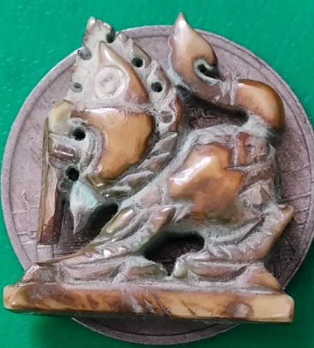 คชสิงห์เนื้องาแกะไม่ทราบที่ ใต้ฐานมีจาร |