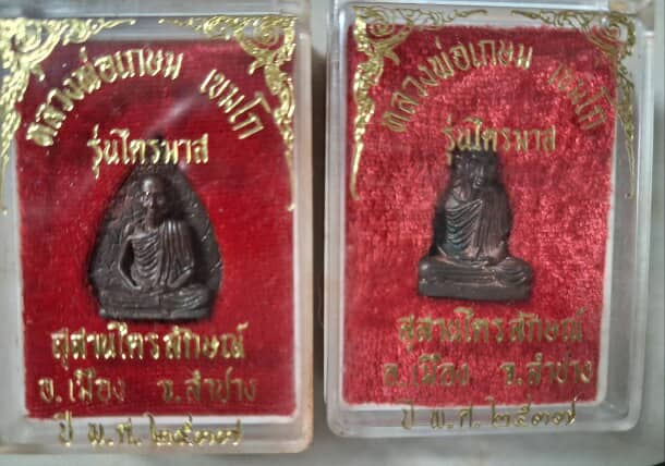 ขายคู่ พระรูปใบโพธิ์+รูปเหมือน เนื้อนวะฯ รุ่นไตรมาสปี 37 หลวงพ่อเกษม เขมโก....สภาพสวยเดิม พร้อมกล่อง