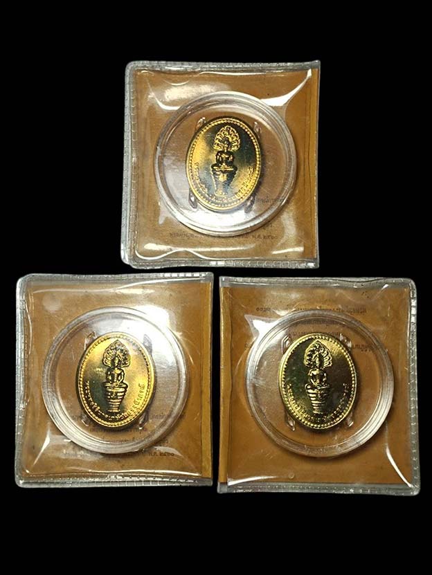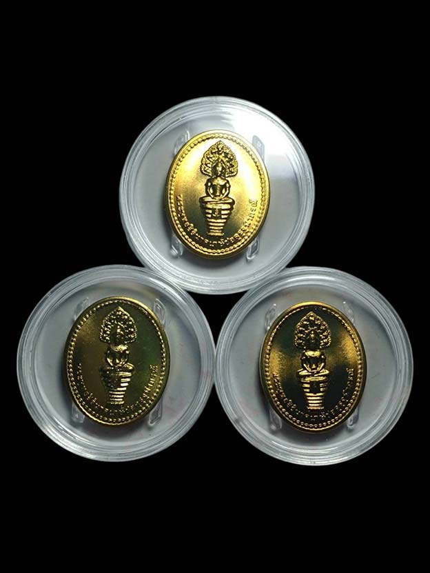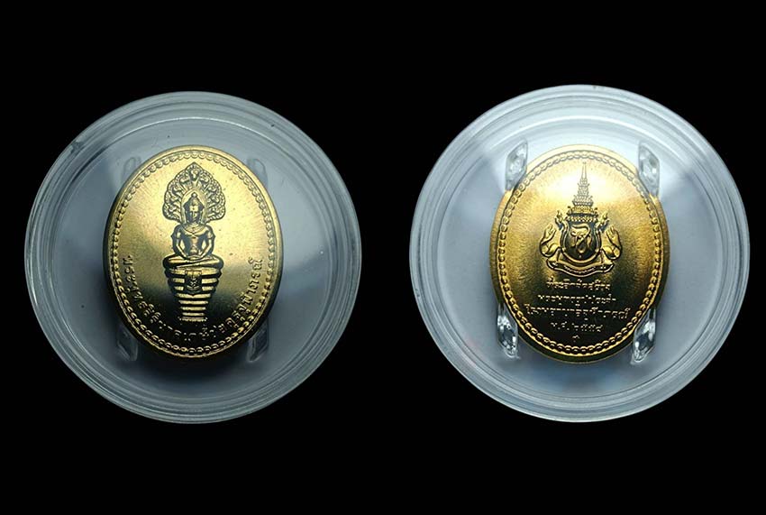 เหรียญที่ระลึกจำนวน 3 เหรียญ พระพุทธสิรินาคเภษัชยคุรุจุฬาภรณ์(เหรียญพระพุทธโอสถ) พ.ศ. 2558 เพื่อถวายเป็นพระราชกุศล