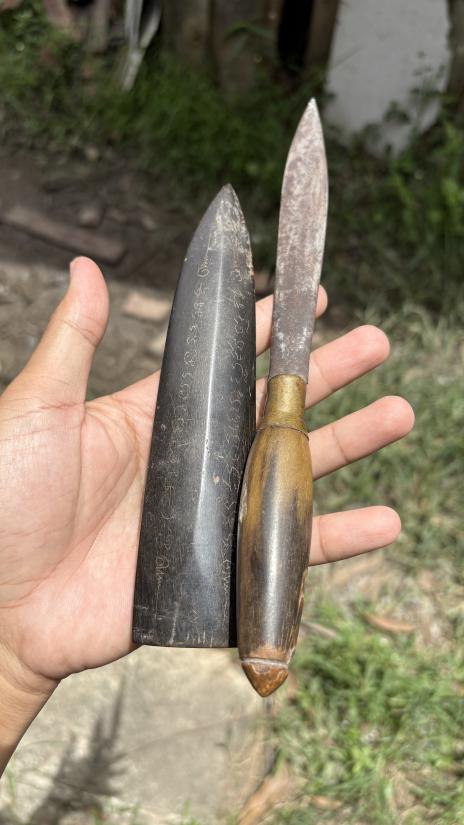 มีดหมอเขาควายเผือก เดิมๆ จารเต็มทั้งฝักทั้งด้าม |