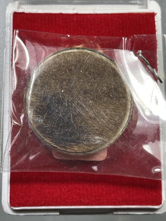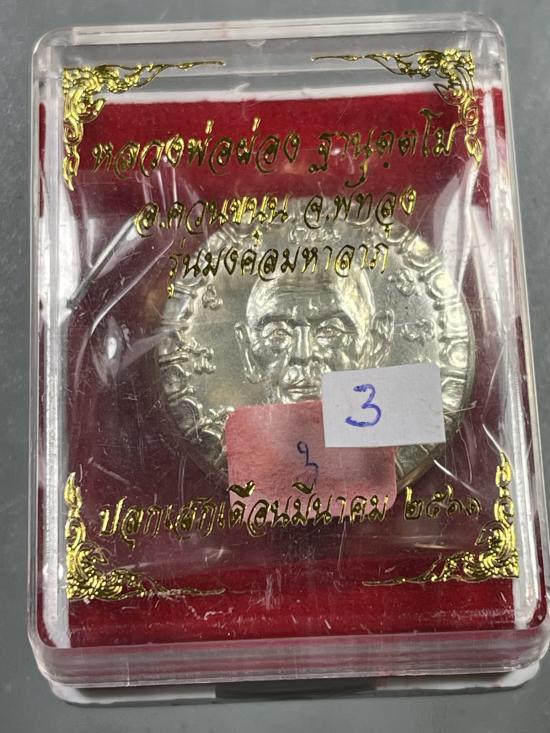 เหรียญตลับยาหม่อง เนื้อเงิน ด้านหลังติดหนังเสือ พ่อท่านผ่อง วัดแจ้ง เลข 3