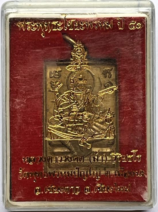 เหรียญพระพุทธไชยะพรหม หลวงตาม้า วัดพุทธพรหมปัญโญ (วัดถ้ำเมืองนะ) เชียงใหม่ ปี51 เนื้อทองเหลือง มีจาร 2ตัว เคาะเดียว |