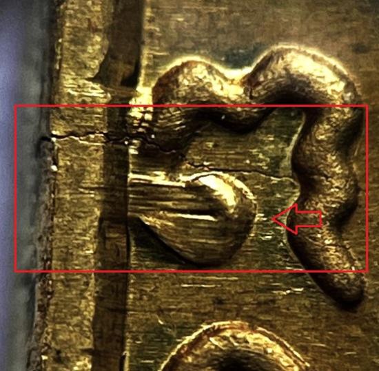 -มีรอยแตกด้านขวาด้านหน้าตรงรอยจาร ไปจนถึงด้านหลังครับ |