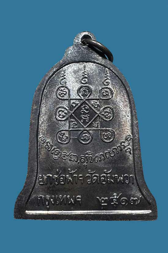 เหรียญระฆังหลวงพ่อเกษม เขมโก ออกที่วัดอัมพวา กรุงเทพ ปี 2517 |