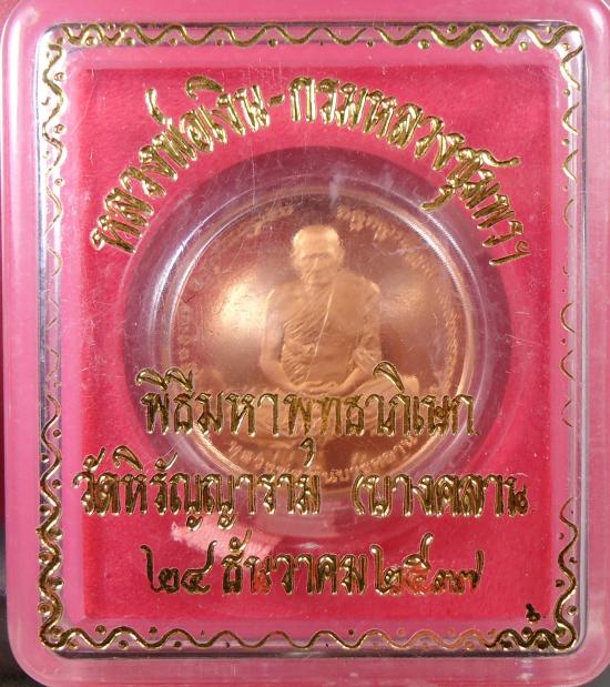 เหรียญเพิร์ธหลวงพ่อเงิน วัดบางคลาน หลังกรมหลวงชุมพร เนื้อทองแดงขัดเงา ปี 2537พร้อมกล่องเดิม |