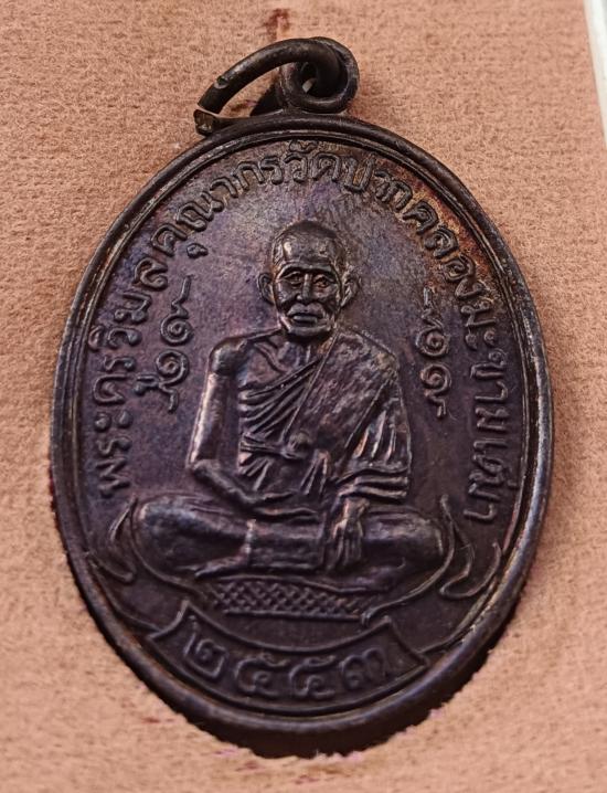 เคาะเดียวเหรียญหลวงปู่ศุข วัดปากคลองมะขามเฒ่า รุ่น 78 ปีสถานีตำรวจภูธรหันคา ปี 53 เนื้อทองแดง พร้อมกล่องเดิม