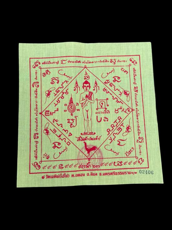 OOK84. ผ้ายันต์ไอ้ไข่เด็กวัดเจดีย์ ขนาด 7x7 นิ้ว ของแท้จากวัดเจดีย์ มีตราวัด นครศรีฯ (เคาะเดียวแดง) |