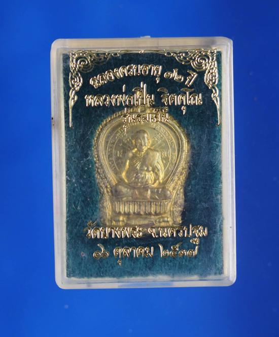 เริ่มที่ 100 บ. เหรียญนั่งพาน ฉลองอายุครบ 6 รอบ หลวงพ่อเปิ่น วัดบางพระ จ.นครปฐม ปี 2537 รุ่น ร่มเย็น เนื้อทองเหลือง หลังยันต์ 9 ยอด เสือตีนโต ตอกโค๊ต หมายเลข สวยกล่องเดิม เคาะแรก |