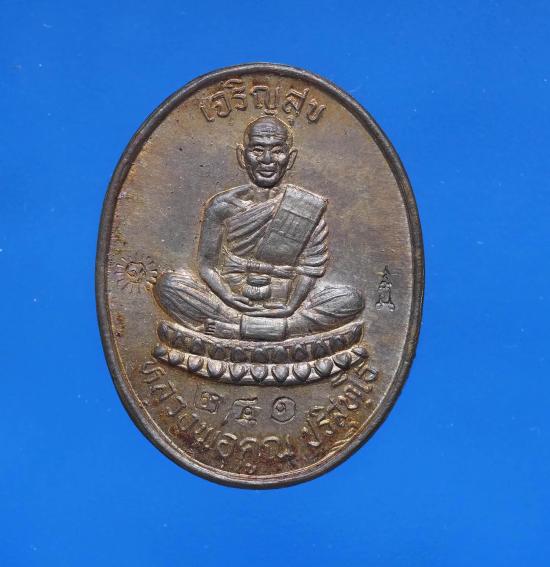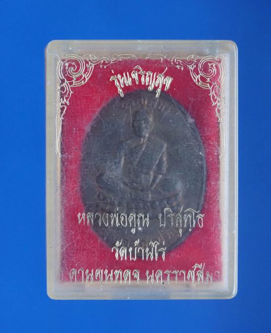 เหรียญนั่งเต็มองค์ หลวงพ่อคูณ รุ่น เจริญสุข เนื้อนวโลหะ ตอก 2 โค๊ด เลข ๒๔๑ พ.ศ.2536 สภาพสวยมาก กล่องเดิม