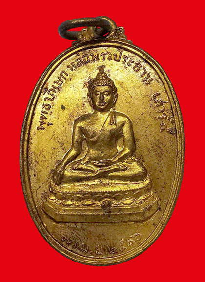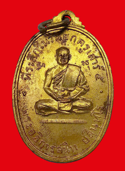 เหรียญพระประธาน หลวงพ่อสนิท วัดลำบัวลอย รุ่นแรก พิมพ์ใหญ่ เนื้อทองแดงกะไหล่ทอง ห่วงเดิม ปี2516 จ.นครนายก |