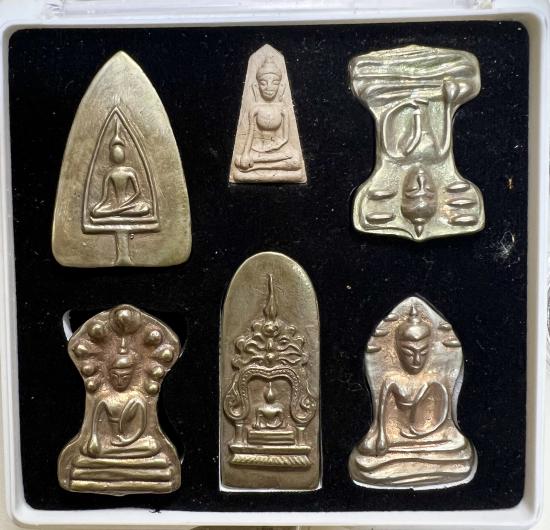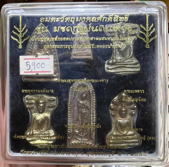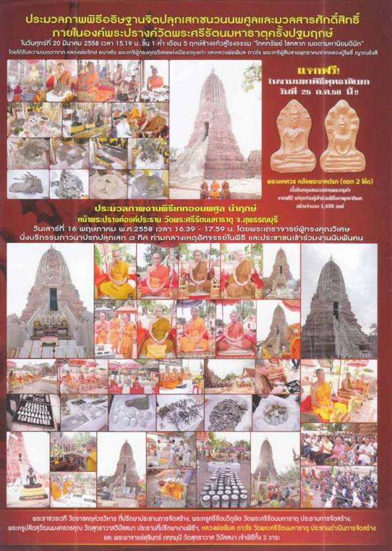 พระหล่อชุดกรรมการอุปถัมป์เททองนำฤกษ์ วัดพระศรีรัตนมหาธาตุ จ.สุพรรณบุรี รุ่นมรดกแผ่นดินทอง ปี 2558 เนื้อนพศูลเหล็กยอดปรางค์ปราสาทผสมชนวนโลหะเก่า กล่องเดิม |